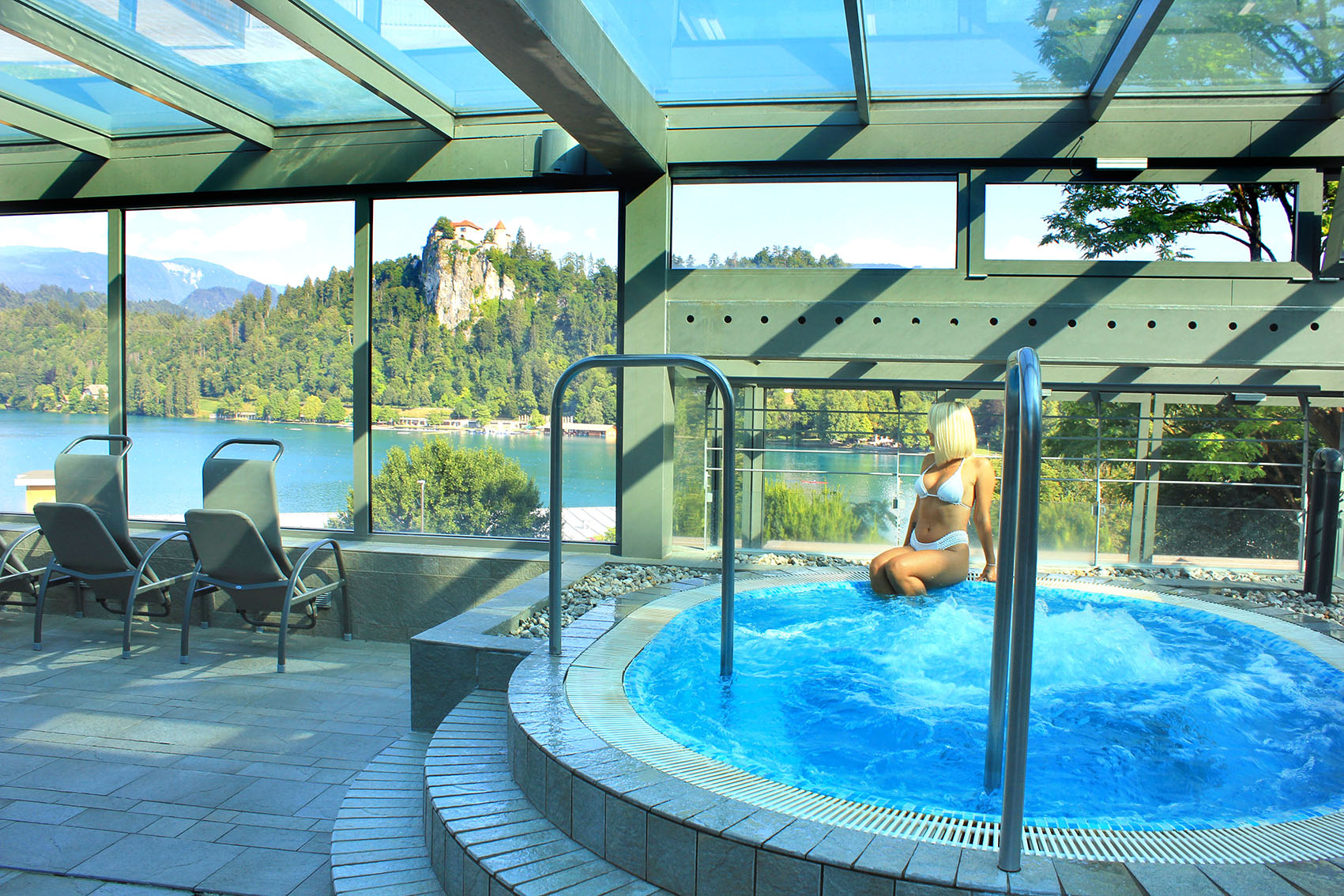 Wellness Živa in the Rikli Balance Hotel offers a wide range of relaxing massages, baths, body and face treatments, and saunas. The centre also features a water park filled with thermal water and offering a wonderful view of Lake Bled.